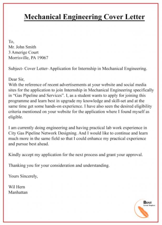 Mechanical Engineering Cover Letter – Best Letter Template